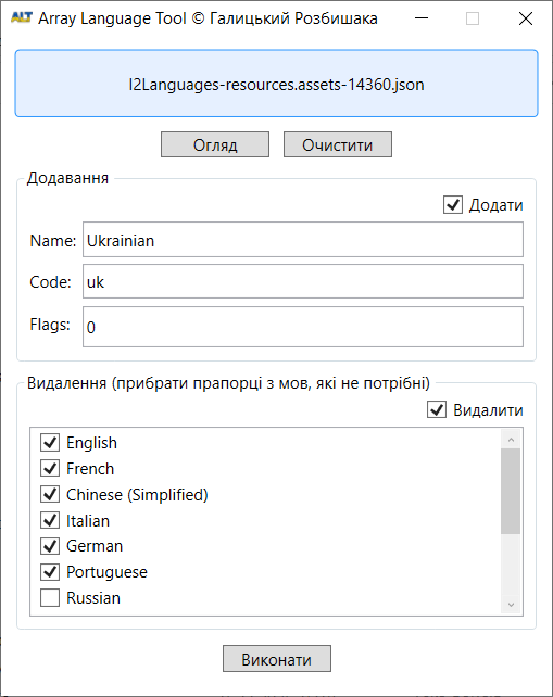 Для додавання української як окремої в MonoBehaviour файли з масивами було написано власний інструмент Array Language Tool.