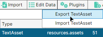 У TextAsset зберігаються практично будь-які текстові дані. Це можуть бути власні формати рядків або табличні дані у вигляді CSV чи TSV, структурований JSON чи формат з тегами XML. Такий асет можна експортувати двома варіантами:
